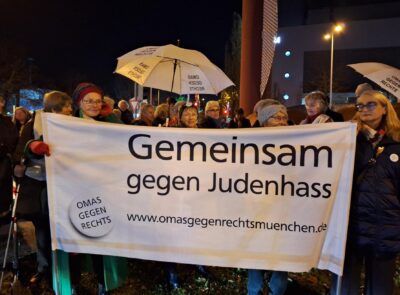 Am Dienstag, dem 11.November 2025 beteiligten sich die OMAS GEGEN RECHTS München an einer Solidaritäts-Kundgebung, unter dem Motto “Die Freiheit der Kunst ist unverhandelbar“ vor der Isarphilharmonie HP8. Aufgerufen dazu hatte der Verein „München ist bunt“. In New York, Gent und Köln, wurden die Konzerte des Israel Philharmonic Orchestra gestört worden. Aus den Protesten wurde eine systematische Einschüchterung der Künstler und Künstlerinnen. Das sollte durch die Protestveranstaltung verhindert werden. Viele Omas beteiligten sich und wir konnten unser Banner “Gemeinsam gegen Judenhass” weit sichtbar platzieren. In den Gesang der OMAS GEGEN RECHTS stimmten zum Schluss fast alle Kundgebungsteilnehmer ein!