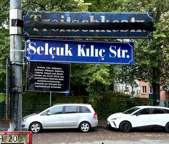 Anlässlich des achten Jahrestags des rassistischen und rechtsterroristischen Attentats am Münchner Olympia-Einkaufszentrum (OEZ) haben in der vergangenen Nacht Aktivist*innen in Erinnerung an die Todesopfer neun historisch belastete Straßen in München symbolisch umbenannt.